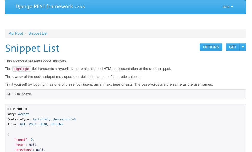 It’s pretty cool! But, I don’t want it in production. Add this to your settings file to force JSON rendering in non-debug mode– Django-speak for production.